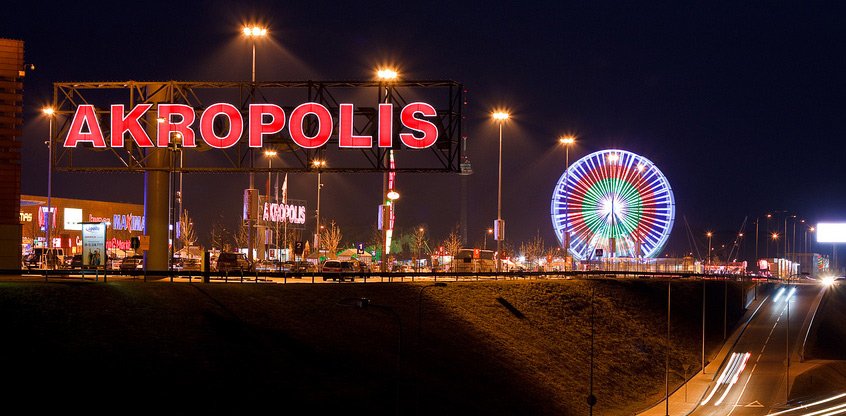 Le centre commercial "Akropolis" est situé à st. Ozo, 25 ans. Il y a un parking près du centre commercial, mais il ne faut pas oublier que pendant les soldes et à Noël, il peut être difficile de trouver des places libres.