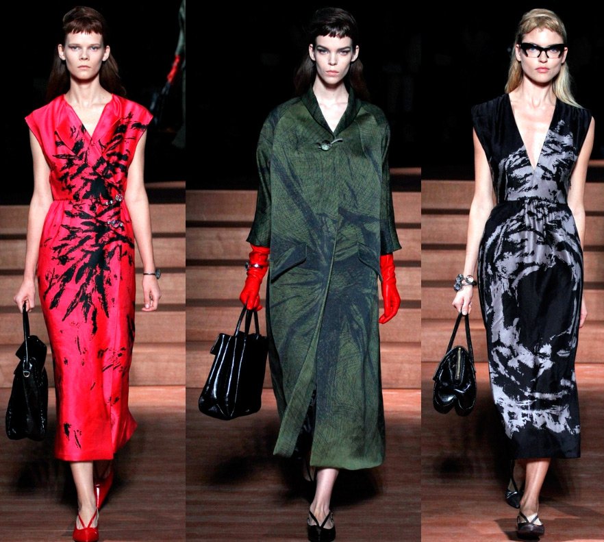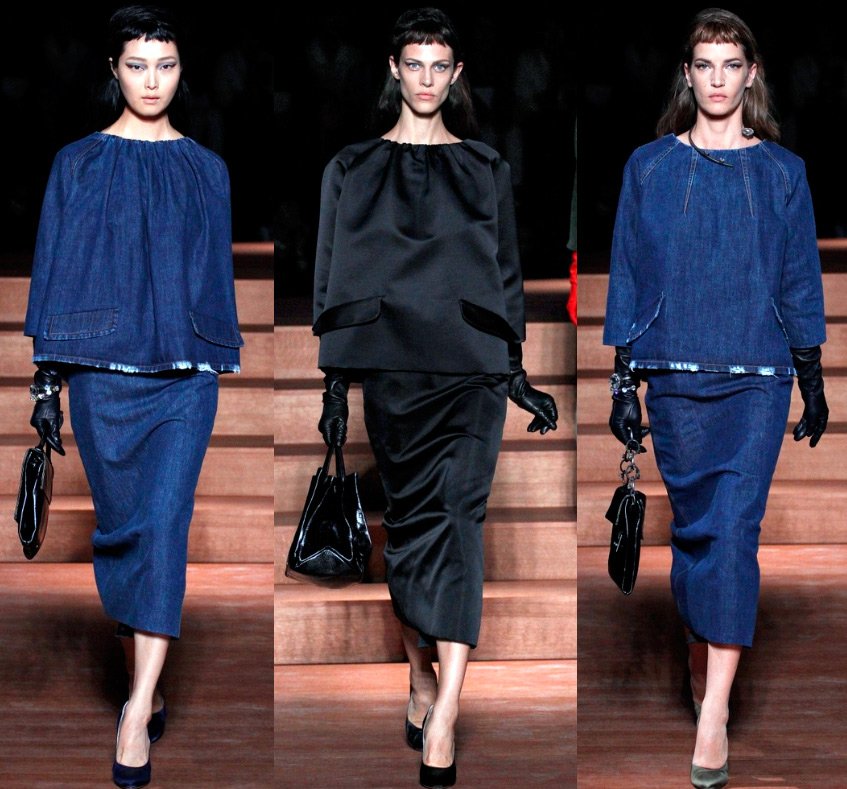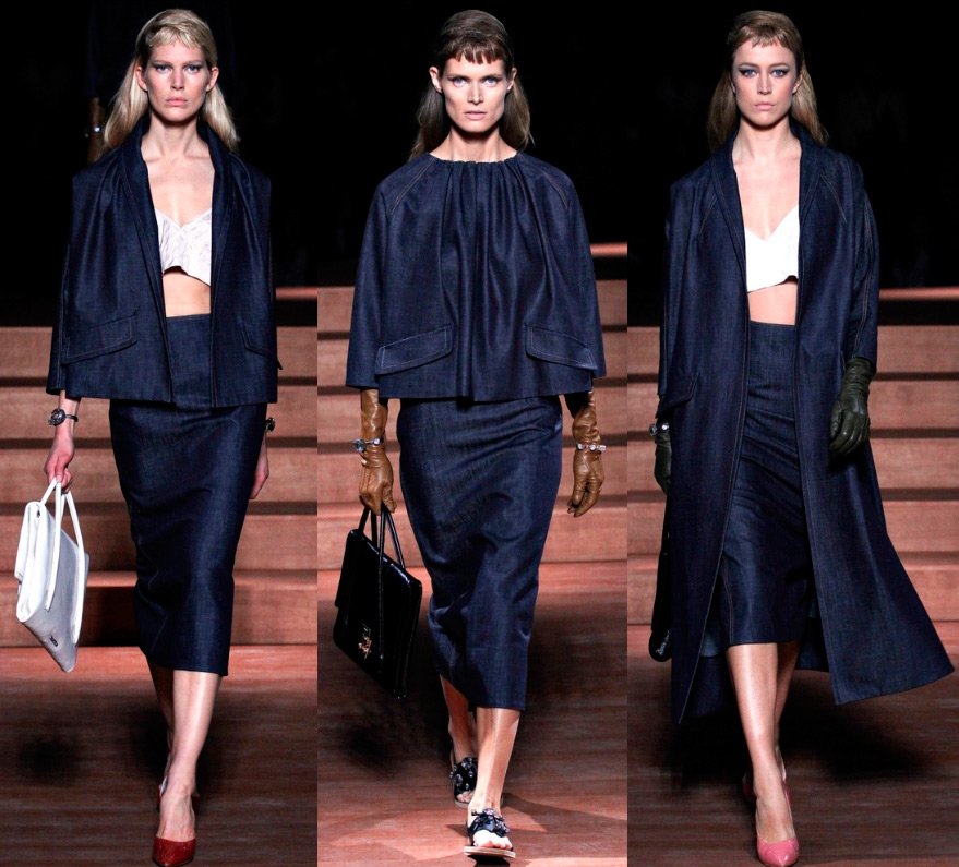 La créatrice de la marque Miuccia Prada s'est souvenue cette année de la mode haute couture des années 50 du siècle dernier, tout en la rapprochant un peu plus de la modernité. La fille habillée par Miu Miu au printemps prochain est une femme fatale.