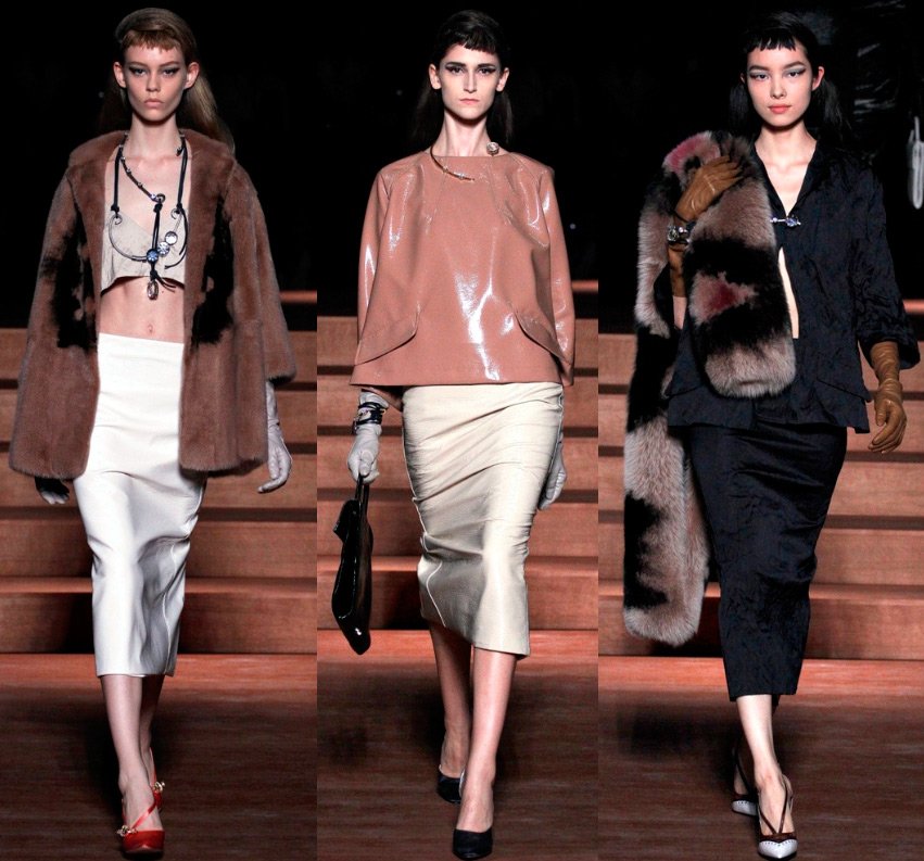 Et dans la collection d'été de Miu Miu, il y a beaucoup de fourrure - boa de zibeline, manteaux de vison, manteaux de fourrure. Peut-être Miuccia Prada entrevoit-elle simplement un refroidissement global après la fin du monde en décembre 2026 ?