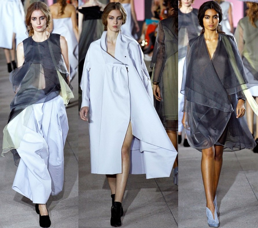 Les couleurs de la collection sont aussi traditionnelles pour les prochaines collections printemps-été que le blanc, le noir, le bleu et le bleu clair, ainsi que le jaune et l'orange, qui ne veulent pas se démoder.