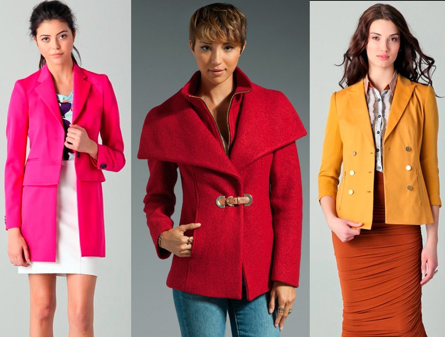 Couleurs vives des vestes? Mais pourquoi pas? Ils sont toujours avec nous cette saison. Ces vestes, aux couleurs corail, écarlate, jaune vif et vert, sont toujours en vogue. Il est intéressant de le combiner avec un jean blanc, un pantalon, une jupe. Une touche spéciale avec des vestes lumineuses sera créée par des chaussures en cuir verni, assorties à des vêtements, à talons hauts ou compensés.