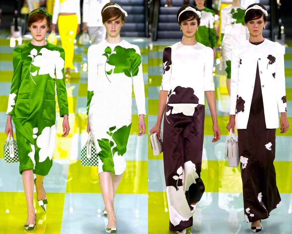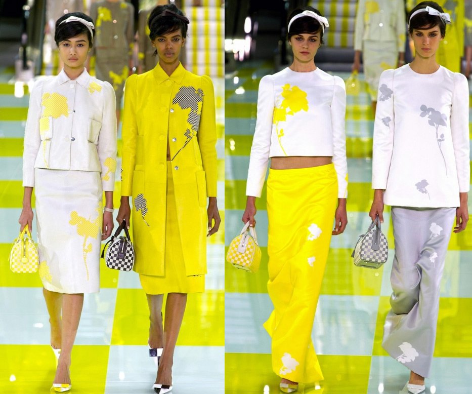En général, la collection de la marque Louis Vuitton s'est avérée vraiment estivale - lumineuse comme le soleil, verte comme l'herbe et jaune comme des pissenlits.