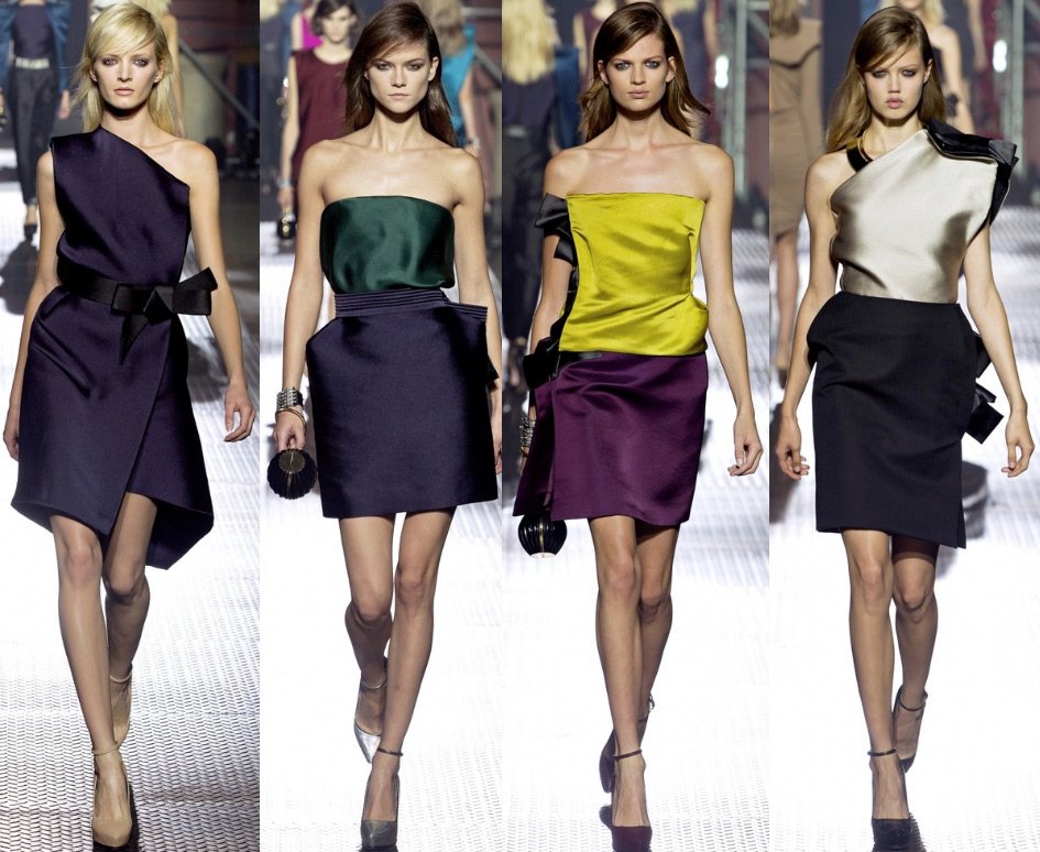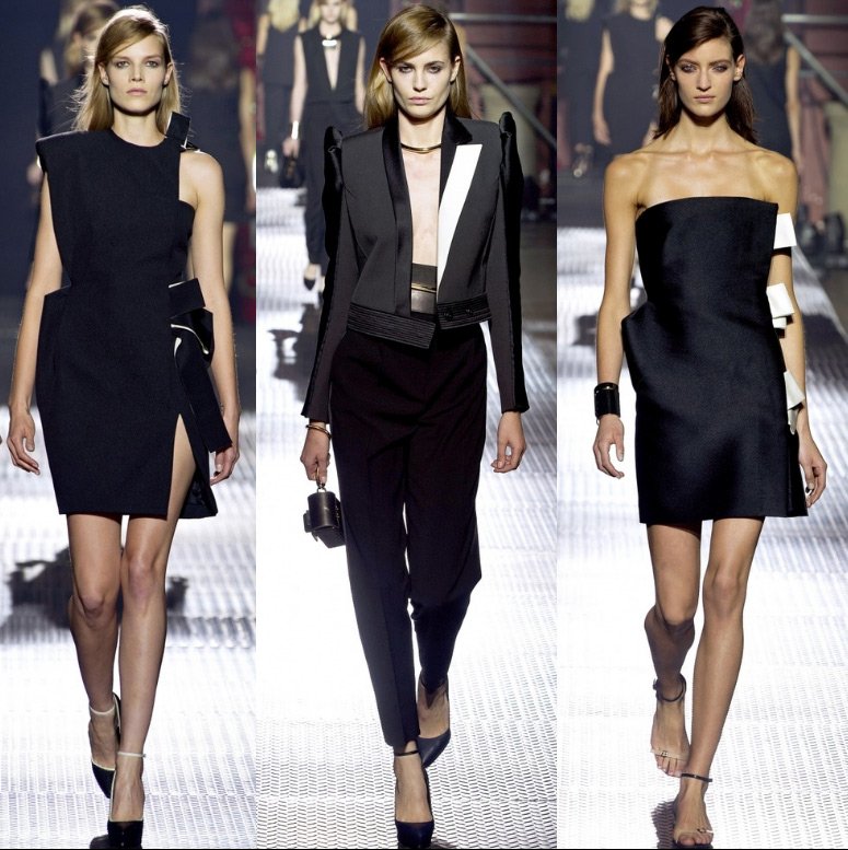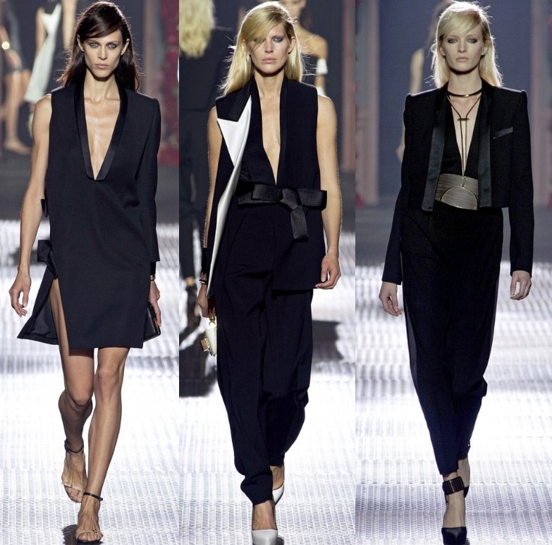 Le créateur de la marque Alber Elbaz a peut-être tenté d'obtenir l'effet inverse en décidant de rendre les tenues féminines plus masculines. La collection comprend désormais des vestes avec des épaules aériennes et plutôt larges, des tenues comme des smokings pour hommes. Mais la collection n'a pas perdu son élégance certaine et sa féminité stricte.