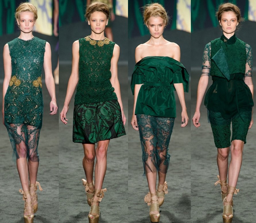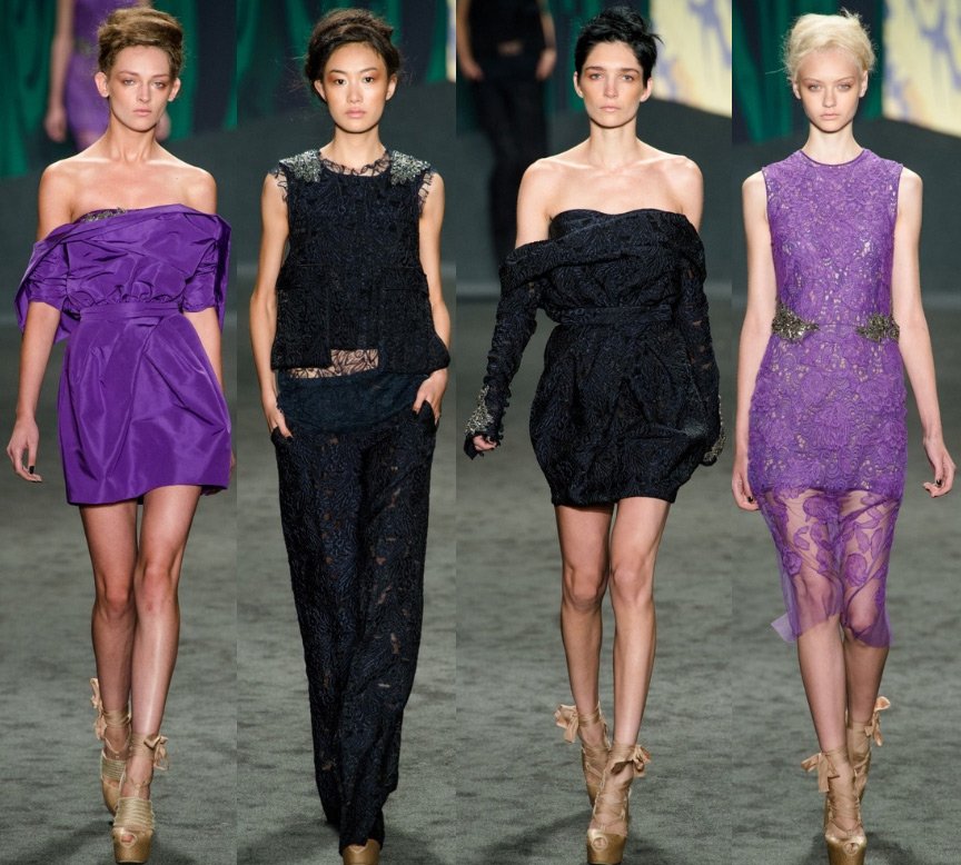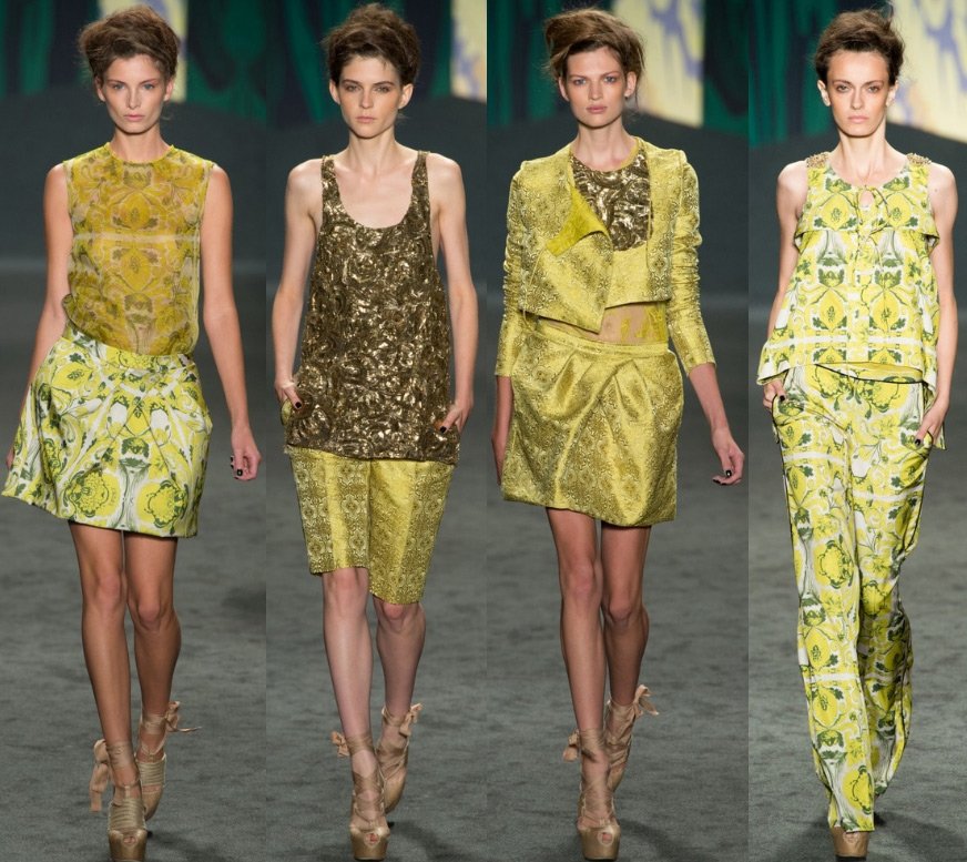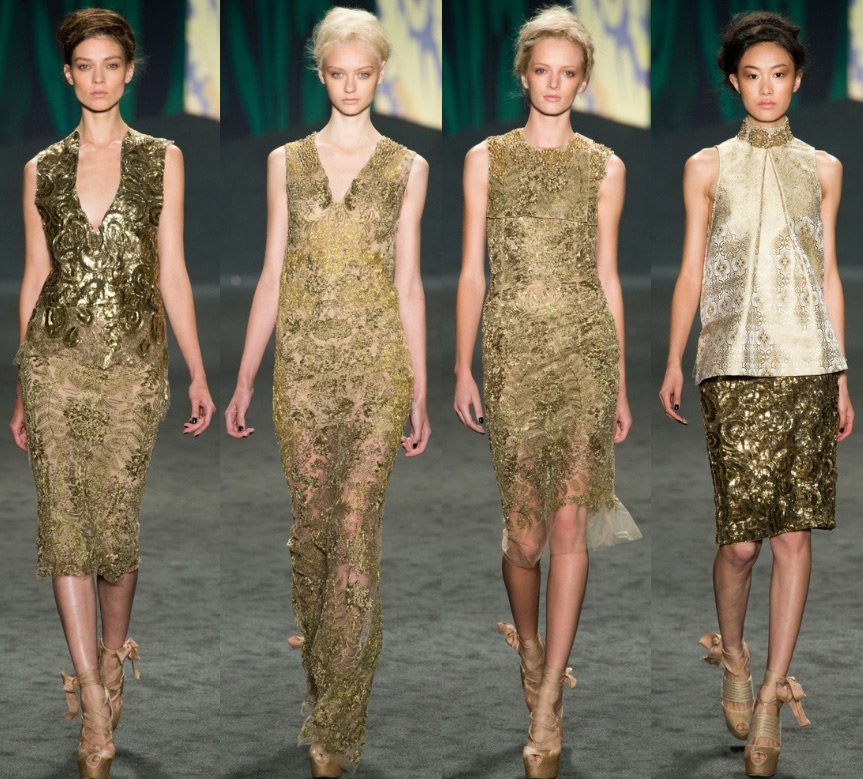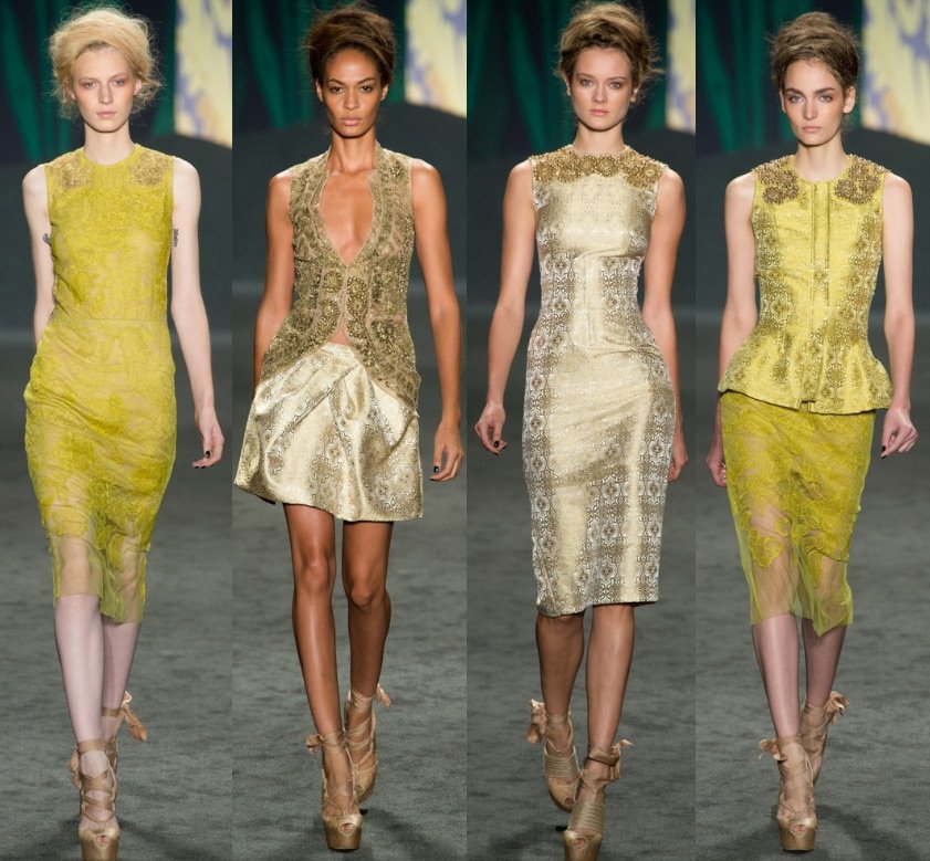 Vera Wong est la reine de la robe de mariée, et sa collection, bien que des vêtements de prêt-à-porter, était pleine de blanc et de dentelle. Mais le motif principal qui a inspiré le designer pour créer cette collection était la culture de l'Inde, qui est confirmée par les couleurs et les motifs de la collection.