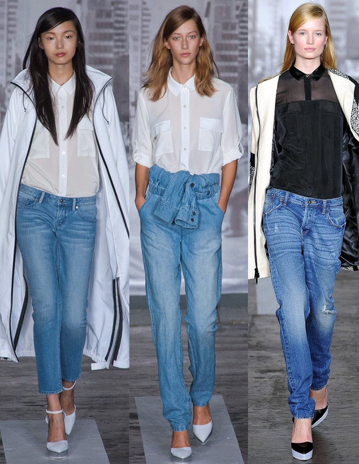 Certains créateurs de leurs collections ont présenté des pantalons capri en denim, quelque peu rétrécis, juste au-dessus du genou - Kelly-Wearstler ou, comme Chanel, avec une coupe plus décontractée.