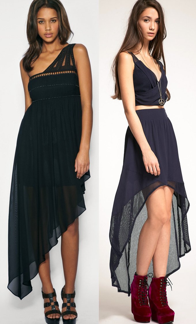 Coupe asymétrique. Désormais, cette coupe est à la pointe de la mode. Asymétrie - des maillots de bain aux robes de soirée. Pour les robes élégantes, une coupe asymétrique convient très bien, par exemple une robe avec une épaule ouverte ou un ourlet de jupe coupé sur le côté, une jupe avec un devant raccourci et une étagère arrière allongée, un décolleté avec une coupe asymétrique . L'asymétrie confère à la tenue un érotisme qui n'est pas pour le spectacle, mais raffiné, raffiné.